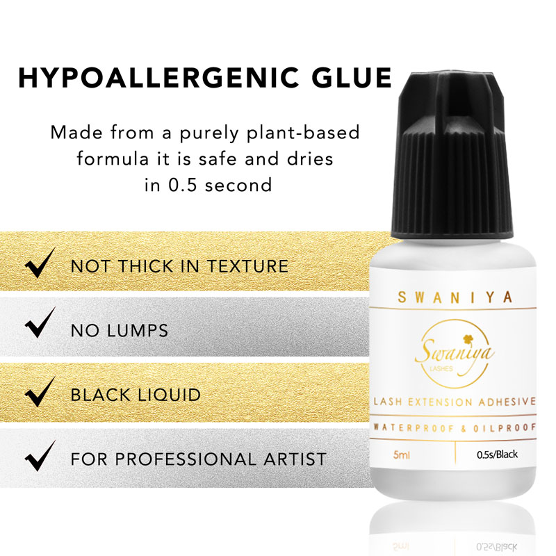 Не само Swaniya лепилото е силно и издръжливо, но е и нежно на естествените мигли. Формулата му с нисък ваг минимизира дразненето и дискомфорта, което го прави подходящ дори за най-чувствителните клиенти. Плюс това, неговият лесен за използване апликатор позволява прецизно и без каша, така че можете да се съсредоточите върху създаването на красиви мигли с лекота.